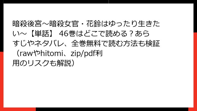 注意:この記事は「暗殺後宮~暗殺女官・花鈴はゆったり生きたい~」の単話版46巻の完全なネタバレを含みます。未読の方は閲覧を避けてください。物語の核心に触れる内容をブログ形式で詳しく解説します。シリーズのファン向けに、プロットツイストやキャラクターの内面を深掘りします。