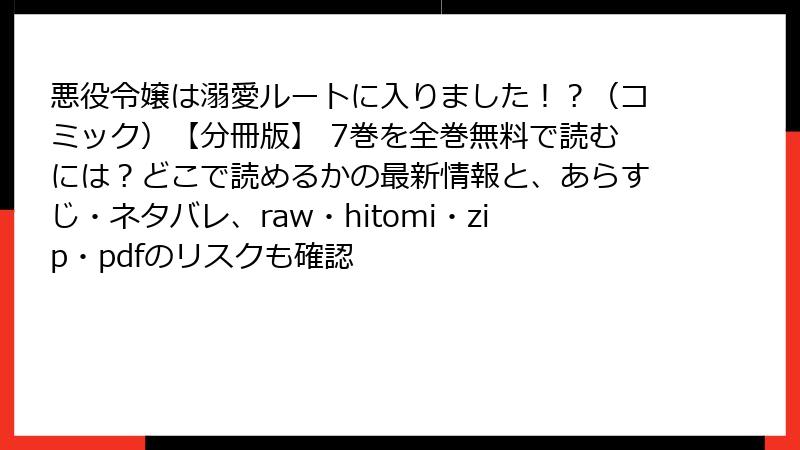 悪役令嬢は溺愛ルートに入りました!?(コミック)【分冊版】 7巻を全巻無料で読むには?どこで読めるかの最新情報と、あらすじ・ネタバレ、raw・hitomi・zip・pdfのリスクも確認 少女マンガ X Facebook はてブ Pocket LINE コピー 2026.01.06
