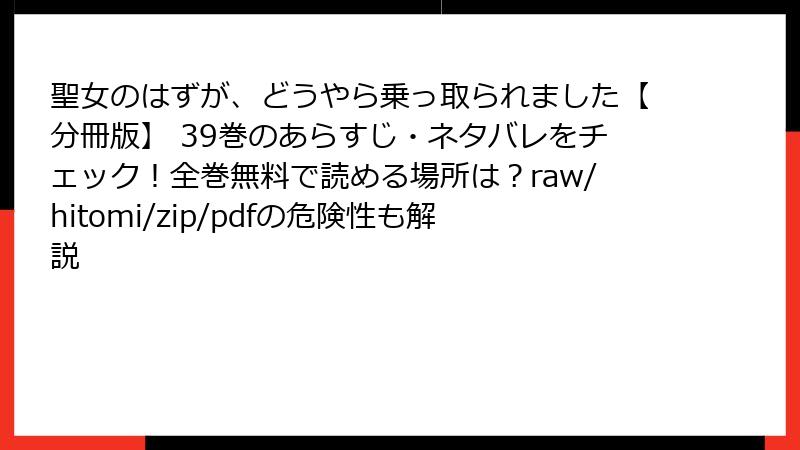 聖女のはずが、どうやら乗っ取られました【分冊版】 39巻のあらすじ・ネタバレをチェック!全巻無料で読める場所は?raw/hitomi/zip/pdfの危険性も解説