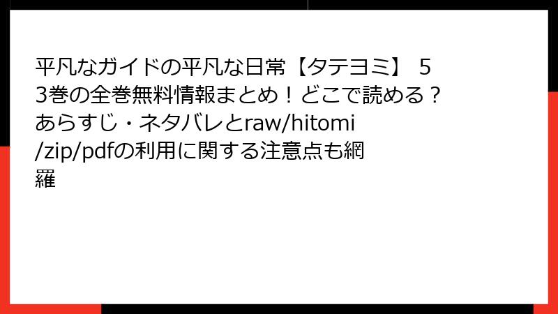 平凡なガイドの平凡な日常【タテヨミ】 53巻の全巻無料情報まとめ!どこで読める?あらすじ・ネタバレとraw/hitomi/zip/pdfの利用に関する注意点も網羅 BLマンガ X Facebook はてブ Pocket LINE コピー 2026.01.07