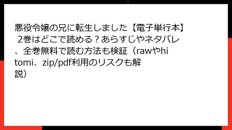 悪役令嬢の兄に転生しました【電子単行本】 2巻はどこで読める?あらすじやネタバレ、全巻無料で読む方法も検証(rawやhitomi、zip/pdf利用のリスクも解説) 少女マンガ X Facebook はてブ Pocket LINE コピー 2026.01.07