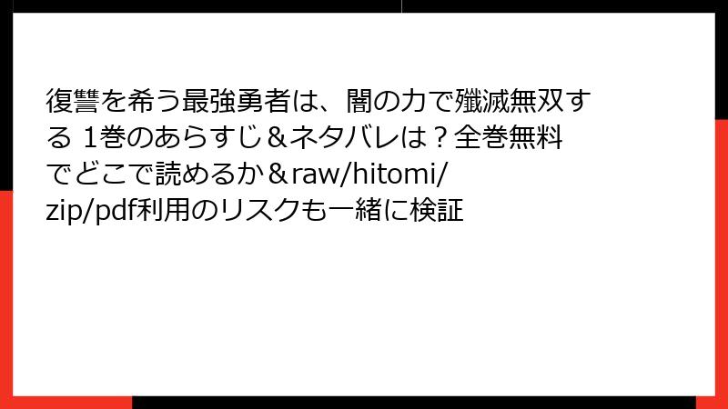 復讐を希う最強勇者は、闇の力で殲滅無双する 1巻のあらすじ&ネタバレは?全巻無料でどこで読めるか&raw/hitomi/zip/pdf利用のリスクも一緒に検証