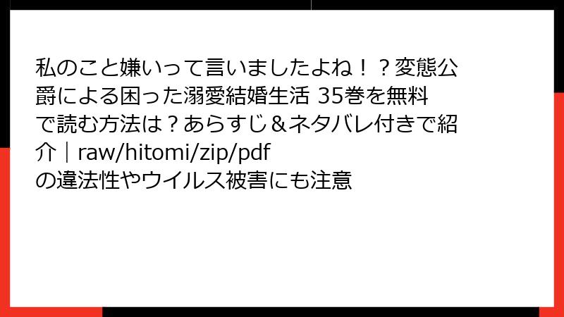 人気漫画「変態公爵による困った溺愛結婚生活」をraw、hitomi、zip、pdf、漫画バンクなどの海賊版サイトで読むのは、便利そうに見えて実は大きな危険を伴います。この記事では、そうした違法サイトの利用に伴うリスクを詳しく解説します。著作権侵害は深刻な問題で、利用者は知らず知らずのうちに法的なトラブルに巻き込まれる可能性があります。以下で、さまざまな側面からリスクを掘り下げます。
