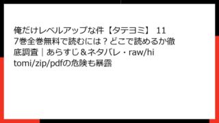 俺だけレベルアップな件【タテヨミ】 俺だけレベルアップな件【タテヨミ】 118巻の全巻無料情報まとめ!どこで読める?あらすじ・ネタバレとraw/hitomi/zip/pdfの利用に関する注意点も網羅