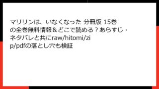 マリリンは、いなくなった 分冊版 マリリンは、いなくなった 分冊版 18巻の全巻無料情報&どこで読める?あらすじ・ネタバレと共にraw/hitomi/zip/pdfの落とし穴も検証