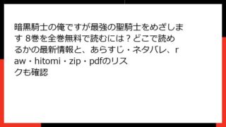 少年マンガ 暗黒騎士の俺ですが最強の聖騎士をめざします 8巻を全巻無料で読むには?どこで読めるかの最新情報と、あらすじ・ネタバレ、raw・hitomi・zip・pdfのリスクも確認