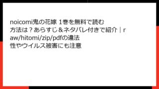noicomi鬼の花嫁 2巻を海賊版サイトで読むリスク 法的リスクと著作権侵害の可能性 海賊版サイトで漫画を読む行為は、著作権法に違反する可能性が高いです。これらのサイトは無許可で作品をアップロードしており、閲覧するだけでも間接的に違法コン...