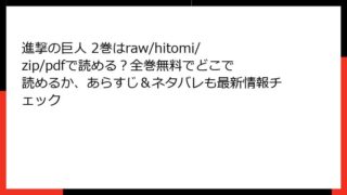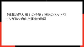 進撃の巨人 第2巻 あらすじ詳解 『進撃の巨人』第2巻は、物語の緊張感が一気に高まる巻です。巨人の脅威が再び人類を襲い、主人公エレン・イェーガーと仲間たちの運命が大きく変わります。ここでは、巻全体の流れを詳細に追いながら、キャラクターの成長...