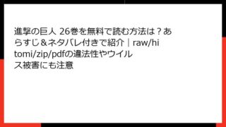 少年マンガ 進撃の巨人 2巻はraw/hitomi/zip/pdfで読める?全巻無料でどこで読めるか、あらすじ&ネタバレも最新情報チェック