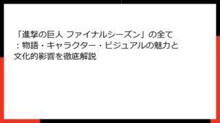 進撃の巨人×MBTIの魅力とは? 巨人の世界で性格診断を楽しむ理由 『進撃の巨人』の壮大な物語は、壁に囲まれた世界で巨人と戦う人類の壮絶な戦いと、キャラクターたちの深い心理描写で世界中のファンを魅了してきました。 このアニメ・漫画の魅力は、...