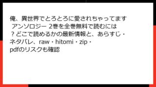 BLマンガ 俺、異世界でとろとろに愛されちゃってます アンソロジー 2巻を全巻無料で読むには?どこで読めるかの最新情報と、あらすじ・ネタバレ、raw・hitomi・zip・pdfのリスクも確認