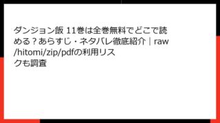 ダンジョン飯 ダンジョン飯 12巻は全巻無料でどこで読める?あらすじ・ネタバレ徹底紹介|raw/hitomi/zip/pdfの利用リスクも調査