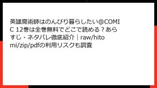 英雄魔術師はのんびり暮らしたい@COMIC 5巻:のんびりとは程遠い、魔法と冒険の渦中へ こんにちは、ファンタジー漫画好きのブロガーです! 今回は、柊遊馬原作、福成冠智作画の人気コミカライズ作品『英雄魔術師はのんびり暮らしたい@COMIC』...