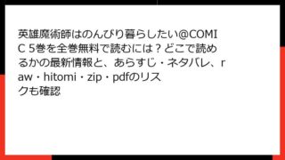 英雄魔術師はのんびり暮らしたい@COMIC 英雄魔術師はのんびり暮らしたい@COMIC 5巻を全巻無料で読むには?どこで読めるかの最新情報と、あらすじ・ネタバレ、raw・hitomi・zip・pdfのリスクも確認