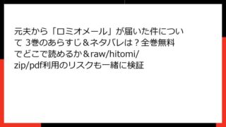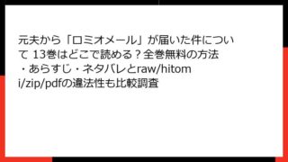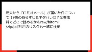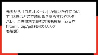 元夫から「ロミオメール」が届いた件について 元夫から「ロミオメール」が届いた件について 13巻はどこで読める?全巻無料の方法・あらすじ・ネタバレとraw/hitomi/zip/pdfの違法性も比較調査