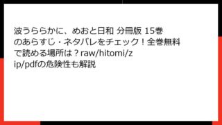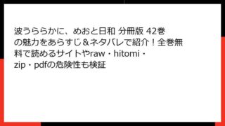 波うららかに、めおと日和 分冊版 波うららかに、めおと日和 分冊版 29巻のあらすじ・ネタバレ解説!全巻無料でどこで読めるか、raw・hitomi・zip・pdfの注意点も紹介