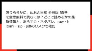 『波うららかに、めおと日和 分冊版 29巻』あらすじ詳細 『波うららかに、めおと日和』は、西香はちによる心温まる昭和時代の夫婦物語です。分冊版29巻では、なつ美と瀧昌のピュアでほのぼのとした関係性がさらに深まり、戦前の日本を背景に彼らの日常...