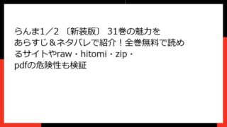 らんま1/2 〔新装版〕 らんま1/2 〔新装版〕 37巻を全巻無料で読むには?どこで読めるかの最新情報と、あらすじ・ネタバレ、raw・hitomi・zip・pdfのリスクも確認