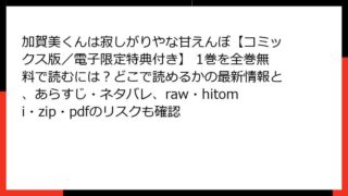 BLマンガ 加賀美くんは寂しがりやな甘えんぼ【コミックス版/電子限定特典付き】 1巻を全巻無料で読むには?どこで読めるかの最新情報と、あらすじ・ネタバレ、raw・hitomi・zip・pdfのリスクも確認 『加賀美くんは寂しがりやな甘えんぼ』1巻 あらすじ詳細 『加賀美くんは寂しがりやな甘えんぼ』は、湯裸によるボーイズラブ(BL)漫画で、ブライト出版のTulle Comicsレーベルから発行されている人気作です。このコミックス版(電子限定特典... 2025.09.03 BLマンガ加賀美くんは寂しがりやな甘えんぼ【コミックス版/電子限定特典付き】