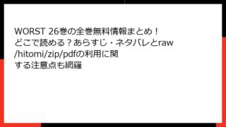 WORST WORST 26巻の全巻無料情報まとめ!どこで読める?あらすじ・ネタバレとraw/hitomi/zip/pdfの利用に関する注意点も網羅