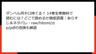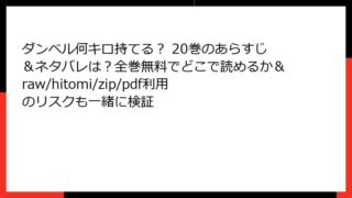 ダンベル何キロ持てる? ダンベル何キロ持てる? 20巻のあらすじ&ネタバレは?全巻無料でどこで読めるか&raw/hitomi/zip/pdf利用のリスクも一緒に検証