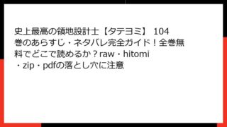史上最高の領地設計士【タテヨミ】 史上最高の領地設計士【タテヨミ】 104巻のあらすじ・ネタバレ完全ガイド!全巻無料でどこで読めるか?raw・hitomi・zip・pdfの落とし穴に注意 『史上最高の領地設計士【タテヨミ】』104巻のあらすじを徹底解説 『史上最高の領地設計士【タテヨミ】』は、原作:BK_Moon、作画:Kim Hyunsoo、脚色:Lee hyunminによる人気の異世界転生マンガです。主人公・山瀬大河が小... 2025.09.03 史上最高の領地設計士【タテヨミ】少年マンガ