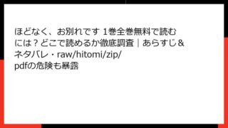 ほどなく、お別れです ほどなく、お別れです 1巻全巻無料で読むには?どこで読めるか徹底調査|あらすじ&ネタバレ・raw/hitomi/zip/pdfの危険も暴露