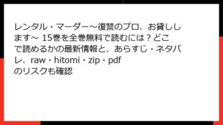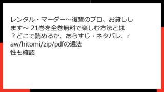 レンタル・マーダー~復讐のプロ、お貸しします~ レンタル・マーダー~復讐のプロ、お貸しします~ 23巻のあらすじ・ネタバレ完全ガイド!全巻無料でどこで読めるか?raw・hitomi・zip・pdfの落とし穴に注意