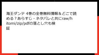 少年マンガ 海王ダンテ 4巻の全巻無料情報&どこで読める?あらすじ・ネタバレと共にraw/hitomi/zip/pdfの落とし穴も検証 海王ダンテ 4巻 あらすじ:エジプトの地下帝国で繰り広げられる壮絶な冒険 『海王ダンテ』は、原作・泉福朗、作画・皆川亮二による海洋浪漫活劇マンガで、18世紀の大航海時代を舞台に、少年ダンテが「要素(エレメント)」と呼ばれる巨大な本と「魔導器... 2025.09.05 少年マンガ海王ダンテ