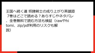 王国へ続く道 奴隷剣士の成り上がり英雄譚 王国へ続く道 奴隷剣士の成り上がり英雄譚 13巻はどこで読める?あらすじやネタバレ、全巻無料で読む方法も検証(rawやhitomi、zip/pdf利用のリスクも解説)