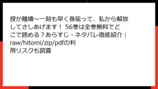 女性マンガ 授か離婚~一刻も早く身籠って、私から解放してさしあげます! 56巻は全巻無料でどこで読める?あらすじ・ネタバレ徹底紹介|raw/hitomi/zip/pdfの利用リスクも調査