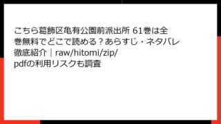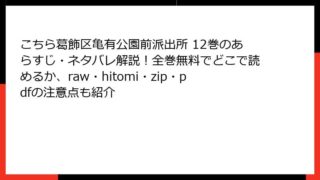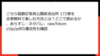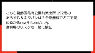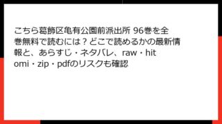 こちら葛飾区亀有公園前派出所 こちら葛飾区亀有公園前派出所 176巻はraw/hitomi/zip/pdfで読める?全巻無料でどこで読めるか、あらすじ&ネタバレも最新情報チェック