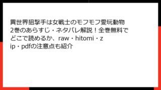 異世界狙撃手は女戦士のモフモフ愛玩動物 第2巻 あらすじ詳細 今回は、人気異世界ファンタジー漫画『異世界狙撃手は女戦士のモフモフ愛玩動物』の第2巻について、詳しくあらすじを掘り下げてみましょう。この巻では、主人公のモフオが仲間たちと本格的に...