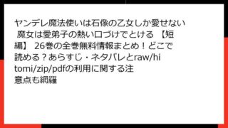 ヤンデレ魔法使いは石像の乙女しか愛せない 魔女は愛弟子の熱い口づけでとける 【短編】 ヤンデレ魔法使いは石像の乙女しか愛せない 魔女は愛弟子の熱い口づけでとける 【短編】 26巻の全巻無料情報まとめ!どこで読める?あらすじ・ネタバレとraw/hitomi/zip/pdfの利用に関する注意点も網羅