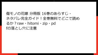 傷モノの花嫁 分冊版 傷モノの花嫁 分冊版 25巻の全巻無料情報まとめ!どこで読める?あらすじ・ネタバレとraw/hitomi/zip/pdfの利用に関する注意点も網羅
