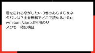 君を忘れる恋がしたい 君を忘れる恋がしたい 3巻のあらすじ&ネタバレは?全巻無料でどこで読めるか&raw/hitomi/zip/pdf利用のリスクも一緒に検証 『君を忘れる恋がしたい』3巻 あらすじ詳細 結木悠による『君を忘れる恋がしたい』は、別冊マーガレットで連載中の感傷的な大学ラブストーリーです。3巻では、主人公の志乃と瀬名の関係が新たな局面を迎え、過去と現在の間で揺れる二人の感情が丁寧に描か... 2025.09.07 君を忘れる恋がしたい少女マンガ