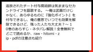 少年マンガ 追放されたチート付与魔術師は気ままなセカンドライフを謳歌する。 ~俺は武器だけじゃなく、あらゆるものに『強化ポイント』を付与できるし、俺の意思でいつでも効果を解除できるけど、残った人たち大丈夫?~ 10巻のあらすじ・ネタバレ解説!全巻無料でどこで読めるか、raw・hitomi・zip・pdfの注意点も紹介
