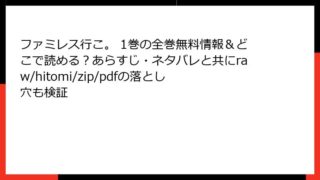 ファミレス行こ。 ファミレス行こ。 1巻の全巻無料情報&どこで読める?あらすじ・ネタバレと共にraw/hitomi/zip/pdfの落とし穴も検証 『ファミレス行こ。』1巻のあらすじを詳しく解説 和山やまによる『ファミレス行こ。』は、累計60万部を突破し、2024年1月に実写映画化もされた『カラオケ行こ!』の待望の続編です。この漫画は、大学1年生になった岡聡実を中心に、深夜のファミレス... 2025.09.07 ファミレス行こ。青年マンガ