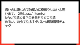 少年マンガ 痛いのは嫌なので防御力に極振りしたいと思います。 2巻はraw/hitomi/zip/pdfで読める?全巻無料でどこで読めるか、あらすじ&ネタバレも最新情報チェック 『痛いのは嫌なので防御力に極振りしたいと思います。』2巻のあらすじを詳しく解説 『痛いのは嫌なので防御力に極振りしたいと思います。』(以下、「防振り」)は、夕蜜柑による原作小説を基にしたおいもとじろうのコミカライズ作品で、VRMMOゲーム「... 2025.09.08 少年マンガ痛いのは嫌なので防御力に極振りしたいと思います。