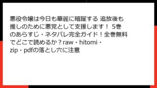 少女マンガ 悪役令嬢は今日も華麗に暗躍する 追放後も推しのために悪党として支援します! 5巻のあらすじ・ネタバレ完全ガイド!全巻無料でどこで読めるか?raw・hitomi・zip・pdfの落とし穴に注意 『悪役令嬢は今日も華麗に暗躍する 追放後も推しのために悪党として支援します!』5巻のあらすじ 『悪役令嬢は今日も華麗に暗躍する 追放後も推しのために悪党として支援します!』は、道草家守による原作小説を高松翼がコミカライズした、異世界転生ファ... 2025.09.08 少女マンガ悪役令嬢は今日も華麗に暗躍する 追放後も推しのために悪党として支援します!