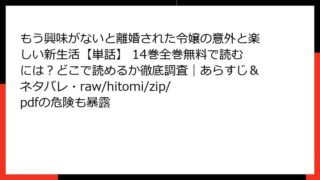 もう興味がないと離婚された令嬢の意外と楽しい新生活【単話】 もう興味がないと離婚された令嬢の意外と楽しい新生活【単話】 9巻の全巻無料情報まとめ!どこで読める?あらすじ・ネタバレとraw/hitomi/zip/pdfの利用に関する注意点も網羅