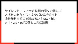 サイレント・ウィッチ 沈黙の魔女の隠しごと サイレント・ウィッチ 沈黙の魔女の隠しごと 3巻の全巻無料情報まとめ!どこで読める?あらすじ・ネタバレとraw/hitomi/zip/pdfの利用に関する注意点も網羅