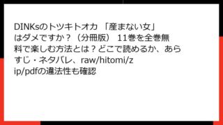 DINKsのトツキトオカ 「産まない女」はダメですか?(分冊版) DINKsのトツキトオカ 「産まない女」はダメですか?(分冊版) 3巻はraw/hitomi/zip/pdfで読める?全巻無料でどこで読めるか、あらすじ&ネタバレも最新情報チェック