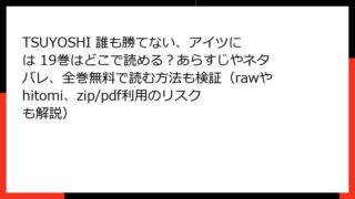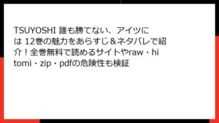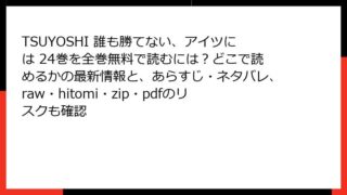 TSUYOSHI 誰も勝てない、アイツには TSUYOSHI 誰も勝てない、アイツには 24巻を全巻無料で読むには?どこで読めるかの最新情報と、あらすじ・ネタバレ、raw・hitomi・zip・pdfのリスクも確認
