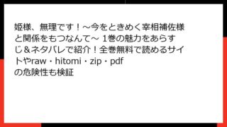 姫様、無理です!~今をときめく宰相補佐様と関係をもつなんて~ 姫様、無理です!~今をときめく宰相補佐様と関係をもつなんて~ 1巻の魅力をあらすじ&ネタバレで紹介!全巻無料で読めるサイトやraw・hitomi・zip・pdfの危険性も検証