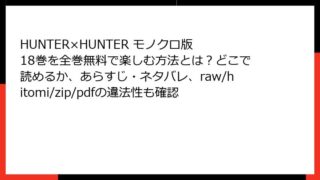 HUNTER×HUNTER モノクロ版 HUNTER×HUNTER モノクロ版 18巻を全巻無料で楽しむ方法とは?どこで読めるか、あらすじ・ネタバレ、raw/hitomi/zip/pdfの違法性も確認