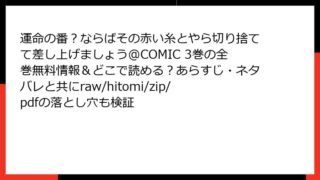 少女マンガ 運命の番?ならばその赤い糸とやら切り捨てて差し上げましょう@COMIC 3巻の全巻無料情報&どこで読める?あらすじ・ネタバレと共にraw/hitomi/zip/pdfの落とし穴も検証