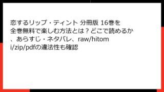 少女マンガ 恋するリップ・ティント 分冊版 16巻を全巻無料で楽しむ方法とは?どこで読めるか、あらすじ・ネタバレ、raw/hitomi/zip/pdfの違法性も確認