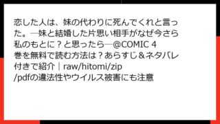 少女マンガ 恋した人は、妹の代わりに死んでくれと言った。―妹と結婚した片思い相手がなぜ今さら私のもとに?と思ったら―@COMIC 1巻のあらすじ&ネタバレは?全巻無料でどこで読めるか&raw/hitomi/zip/pdf利用のリスクも一緒に検証