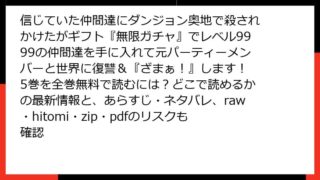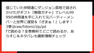 信じていた仲間達にダンジョン奥地で殺されかけたがギフト『無限ガチャ』でレベル9999の仲間達を手に入れて元パーティーメンバーと世界に復讐&『ざまぁ!』します! 信じていた仲間達にダンジョン奥地で殺されかけたがギフト『無限ガチャ』でレベル9999の仲間達を手に入れて元パーティーメンバーと世界に復讐&『ざまぁ!』します! 6巻の全巻無料情報&どこで読める?あらすじ・ネタバレと共にraw/hitomi/zip/pdfの落とし穴も検証